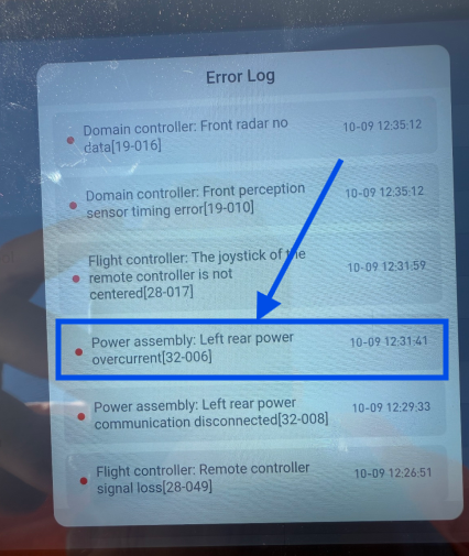 J100 Power Assembly Left/Right Rear Power Overcurrent. Errors (32-006), (32-014).