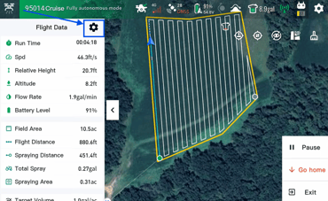 1. Select the settings icon in Flight Data while the drone is flying