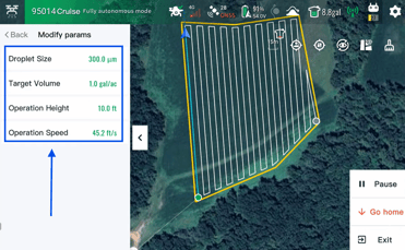 3. Once adjustments have been made and you select 'confirm', the drone will begin applying the adjustments immediately.