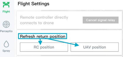 - Select 'RC position', and the current location of the RC will be the new Home point, and this is where the drone will return and land.
