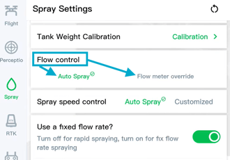 - The flow control section now has the feature of selecting 'Auto Spray', which utilizes your flow meter to determine your flow to meet whatever GPA you have set.