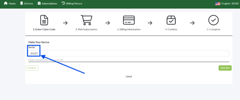 3. Input the last 5 digits of the serial number on the card into the ‘Serial’ box
