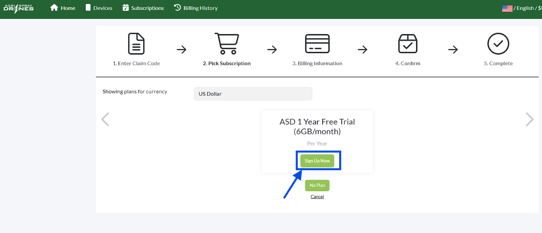 4. Select the ASD Free plan to activate your free 1 year trial subscription.