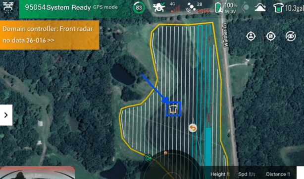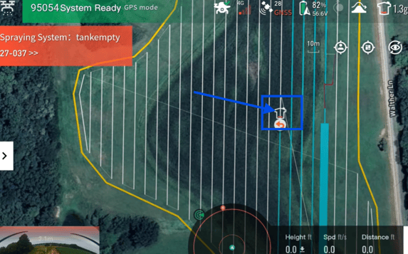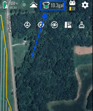 - In your Operations screen on your remote controller (RC). You will notice when performing a spray operation, a Tank Icon will be shown. This icon shows where at on the field you are estimated to have an empty tank based on how full your tank is.