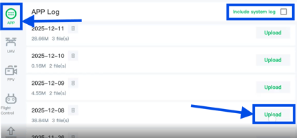 This article outlines the steps and process for uploading all the flight logs on the J150, including: APP, UAV, FPV, and Flight Controller (CPU).