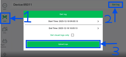 (Which is why it is essential to keep track of time when you have a crash) - Once the correct time has been input, select 'Upload Logs.'