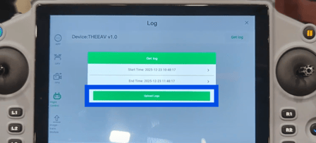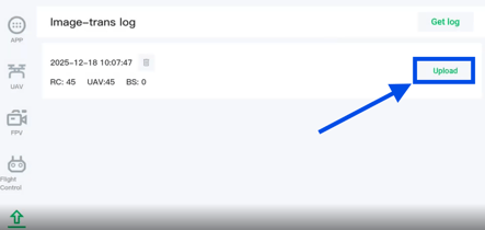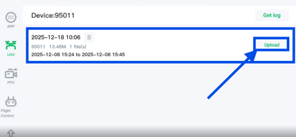 - The downloaded log will now show in your Log section of the Flight Controller section. Select 'Upload', and select confirm.