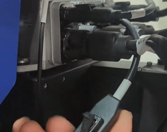 - Plug one end of the USB cable into the remote controller (RC) and the other end into the USB port on the cable shown above.